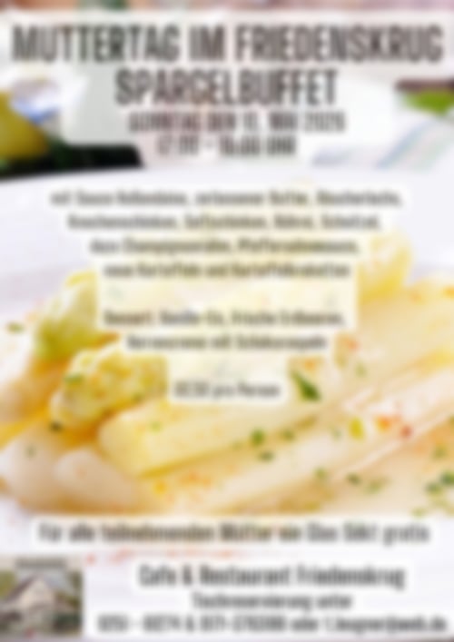Feiern Sie Muttertag abends bei einem besonderen Spargelbuffet im Café & Restaurant Friedenskrug – Qualität und Gastlichkeit erwarten Sie.